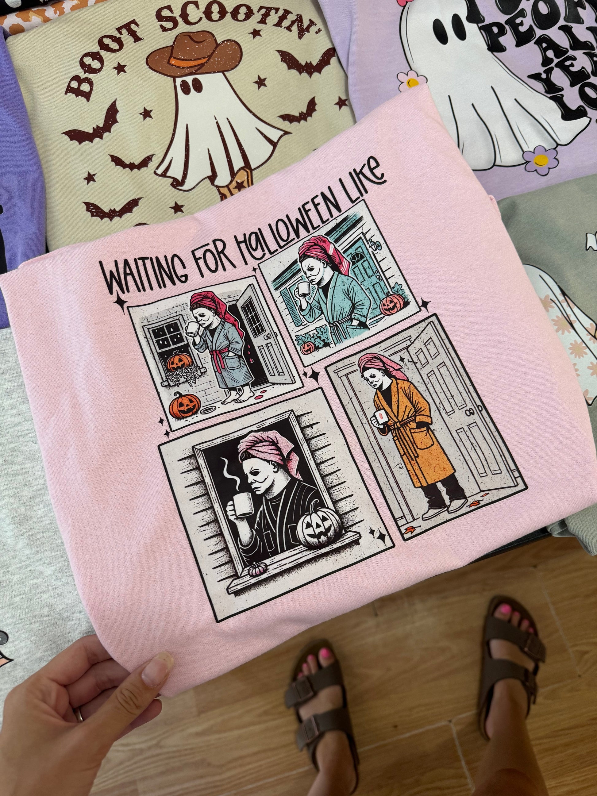 Counting down the days until spooky season? This Waiting for Halloween Like graphic tee or sweatshirt says it all. Perfect for pumpkin patch trips, haunted houses, or just living your best October life all year long.